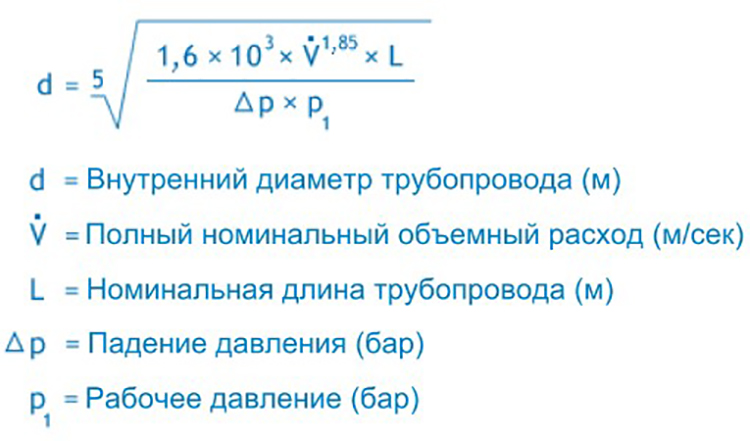 Принимая во внимание эти критерии, можно определить требуемый диаметр линии подачи сжатого воздуха. Диаметр трубопровода определяется одним из следующих способов:
